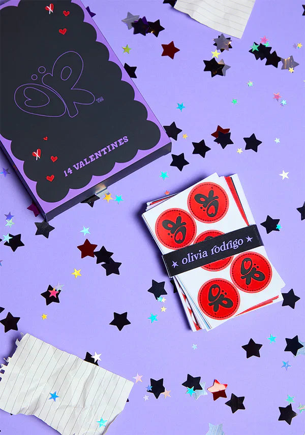 The Box of GUTS Valentines is a heart-bursting, nostalgia-drenched collectible set that celebrates all the messy, magical, moody emotions of the GUTS era. Packed with exclusive designs and lyrical nods to Olivia Rodrigo’s gut-punching anthems, this limited-edition card box lets you spill your heart the Livie way — raw, real, and unapologetically emotional.