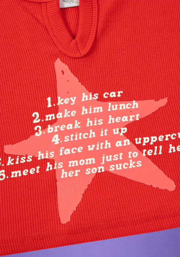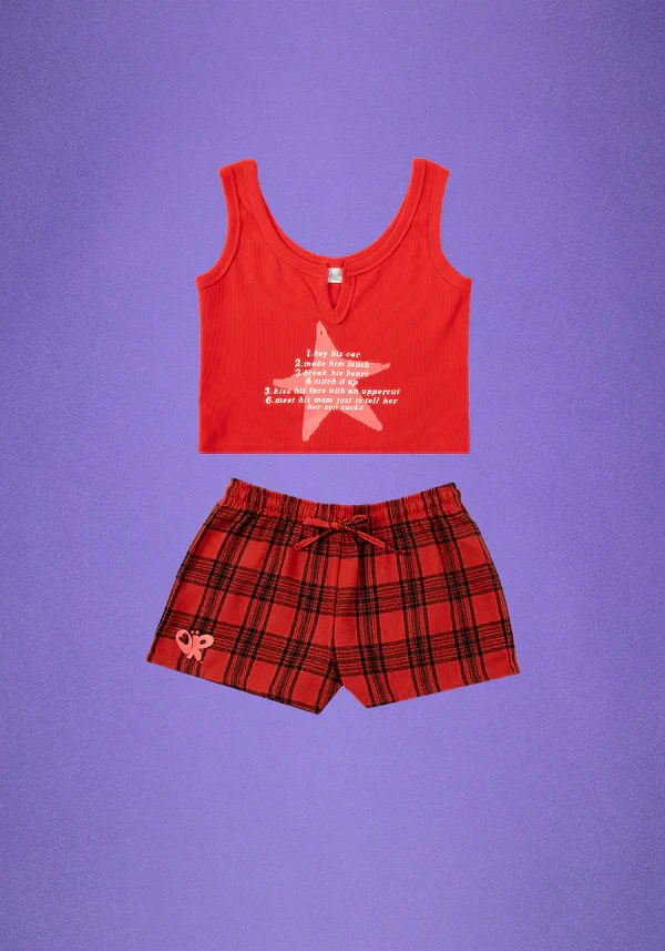 Slip into revenge-mode comfort with the get him back! PJ Set — Olivia Rodrigo’s unapologetically bold loungewear designed for heartbreak hangouts, late-night lyrics, and post-breakup plotting. Inspired by the explosive energy of the GUTS anthem “get him back!,” this pajama set is the perfect mix of cozy softness and rebellious attitude.